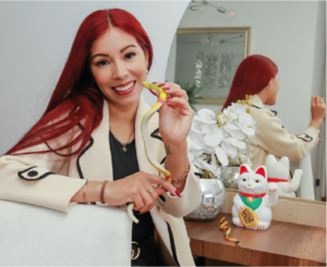 Ella es un rostro conocido. Lorena ha sido portada de esta revista en el 2011 y el 2023. En ambas ocasiones, como fiel representante del signo de la serpiente, la modelo, maquilladora profesional y madre de un niño, derramó elegancia ante nuestras cámaras y nos contó sobre su amor por los conejos. Hoy, con 35 años, Lorena se define como una mujer trabajadora, sabia, emprendedora y creativa. “Ser una nacida en el año de la serpiente me ha dado cualidades valiosas: soy una mujer que, para lograr sus metas personales y profesionales, planifica con antelación y confía mucho en su intuición”, afirma.