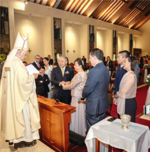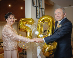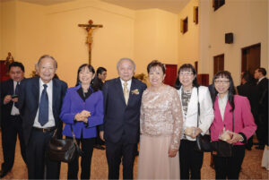 una nieta y cinco nietos. Fueron los hijos, justamente, quienes se echaron al hombro la feliz tarea de organizar la celebración de las Bodas de Oro. Hubo una misa oficiada por el Obispo Auxiliar Emérito de Lima y vicario pastoral de la comunidad china en Lima, Adriano Tomasi, y luego, rodeados de la familia y amigos, compartieron momentos inolvidables. Ambos descienden de esforzados inmigrantes que a su llegada trabajaron como empleados y luego, empeñados en salir adelante y educar a sus hijos, formaron empresas.
