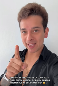Show musical de Ricky Santos “Homenaje al Sol de México”: Prepárate para un increíble repertorio con las mejores canciones en tributo al intérprete méxicano Luis Miguel, en la voz del imitador, músico y compositor Ricky Santos. Canta y vive la emoción de esta presentación que amenizará el Festival de la Luna 2024.
