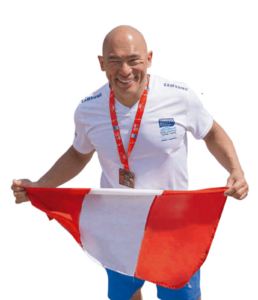 Competidor en desafíos similares en el litoral peruano, anteriormente participó en diversos eventos como La ruta Olaya (Chorrillos-Callao), de 22 km, Isla San Lorenzo-La Punta, de 7.5 km, Máncora-Vichayito, de 6 km, y Nadada de la Amistad (Asia), de 3.8 km. Esta vez puso la vista en el otro lado del charco, luego de enterarse in situ, en 2022, que una vez al año se cierra la navegación entre el mar de Marmara y el mar Negro por esta travesía. Organizada por el Comité Olímpico Turco, la oficialmente llamada Carrera de Natación Transcontinental Samsung Bósforo se celebra cada año desde 1989. En ella participó el pasado 27 de agosto, junto con más de 4,000 competidores dispuestos a cruzar a brazo partido de Asia a Europa. Empezó a practicar natación hace 12 años acompañando a su hijo Gonzalo a entrenarse en el Campo de Marte. Gonzalo lo hacía en la piscina grande, él en la chica, como alumno libre. Más adelante, luego de una competencia en aguas abiertas, donde su hijo quedó en tercer puesto en la clasificación general, lo invitaron al club Aqualab en la categoría Master. Desciende de Fernando Tang, originario de Hokshan, Cantón, que se estableció en Huaral; y por línea materna, de Federico Tong, también originario de Cantón, quien fundó el Teatro “Las Delicias”, en Barrios Altos, y después la hacienda del mismo nombre en Tingo María.