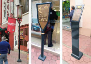 Elementos incluidos en la calle Capón. La propuesta respetó las características de los ornamentos y las decoraciones colocadas en los años 70.