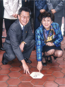 Miembros de APCH, entre ellos su actual presidente, acompañan a Miss China y segunda princesa Miss Mundo 2003, Guan Qi, quien nos visitó en 2004 para la coronación de Miss Tusán. Se colocó una baldosa con su nombre en la calle Capón.